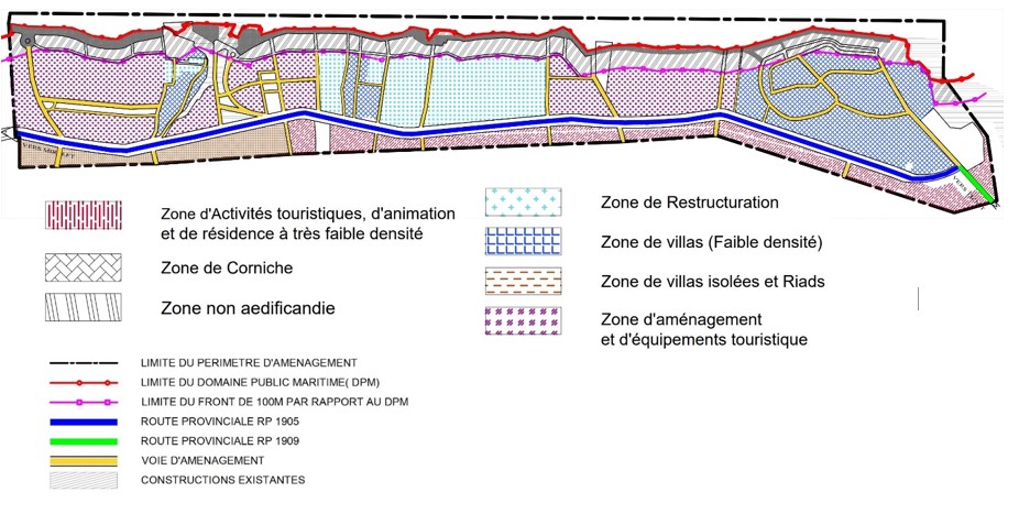 ونظرا لمؤهلاتها السياحية المهمة والمتمثلة في الشريط الساحلي وبغية تشجيع الاستثمار المستدام في القطاع السياحي والخدمات المواكبة له فقد تم اعداد هذا التصميم وفق مقاربة جديدة تروم تنزيل مختلف القوانين الجاري بها العمل خاصة مقتضيات القانون رقم 12-81 المتعلق بالساحل بالإضافة الى اعداد ضابطة للتهيئة تلائم الخصوصيات المحلية والطبيعية للمنطقة موضوع تصميم التهيئة القطاعي مع تثمين السياحة الايكولوجية والشاطئية مع الحفاظ على التوازنات الايكولوجية والبيئة للمنطقة